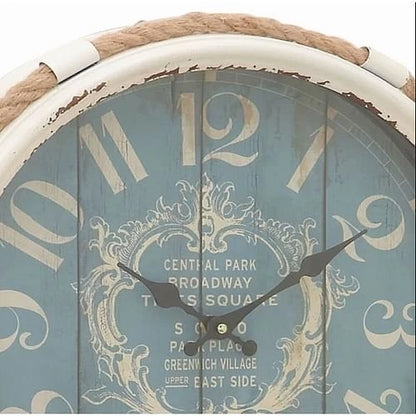 The clock has a worried white iron frame, with paint details, the old one, improves the beauty. A thick brown rope is packed around the perimeter deep, which adds depth and marine appeal. The printed face shows a light blue background with a pure white digit mark, providing a clear, stylish screen.
