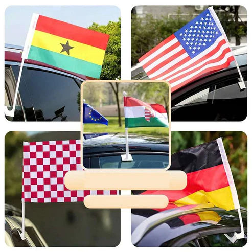 1. High-Quality Material: Our car flag set is made of durable polyester and plastic, ensuring long-lasting use and resistance to wear and tear.