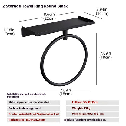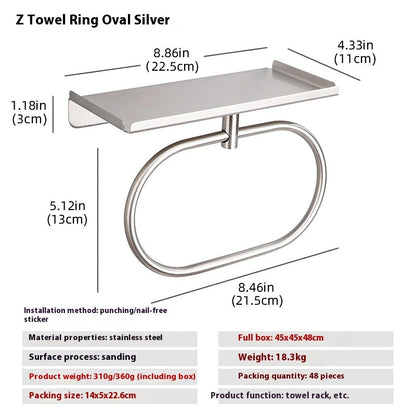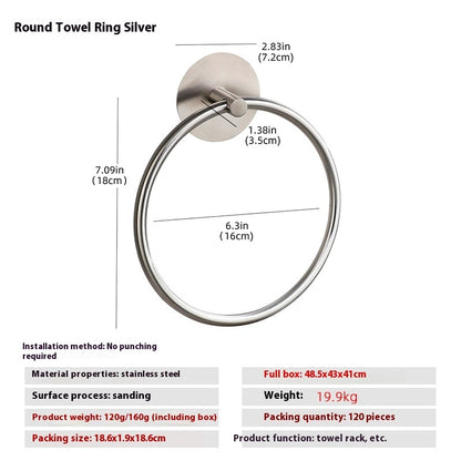 Punch-Free Stainless Steel Bathroom Towel Ring