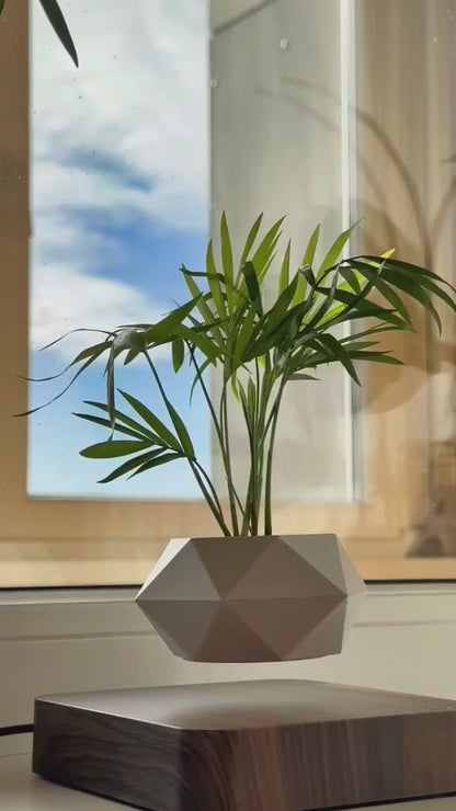 Crafted with a sleek hexagonal wood grain design, this levitating flower pot adds a modern touch to any environment. The flowerpot hovers effortlessly above its base, creating an enchanting spectacle that brings a sense of wonder to your surroundings.