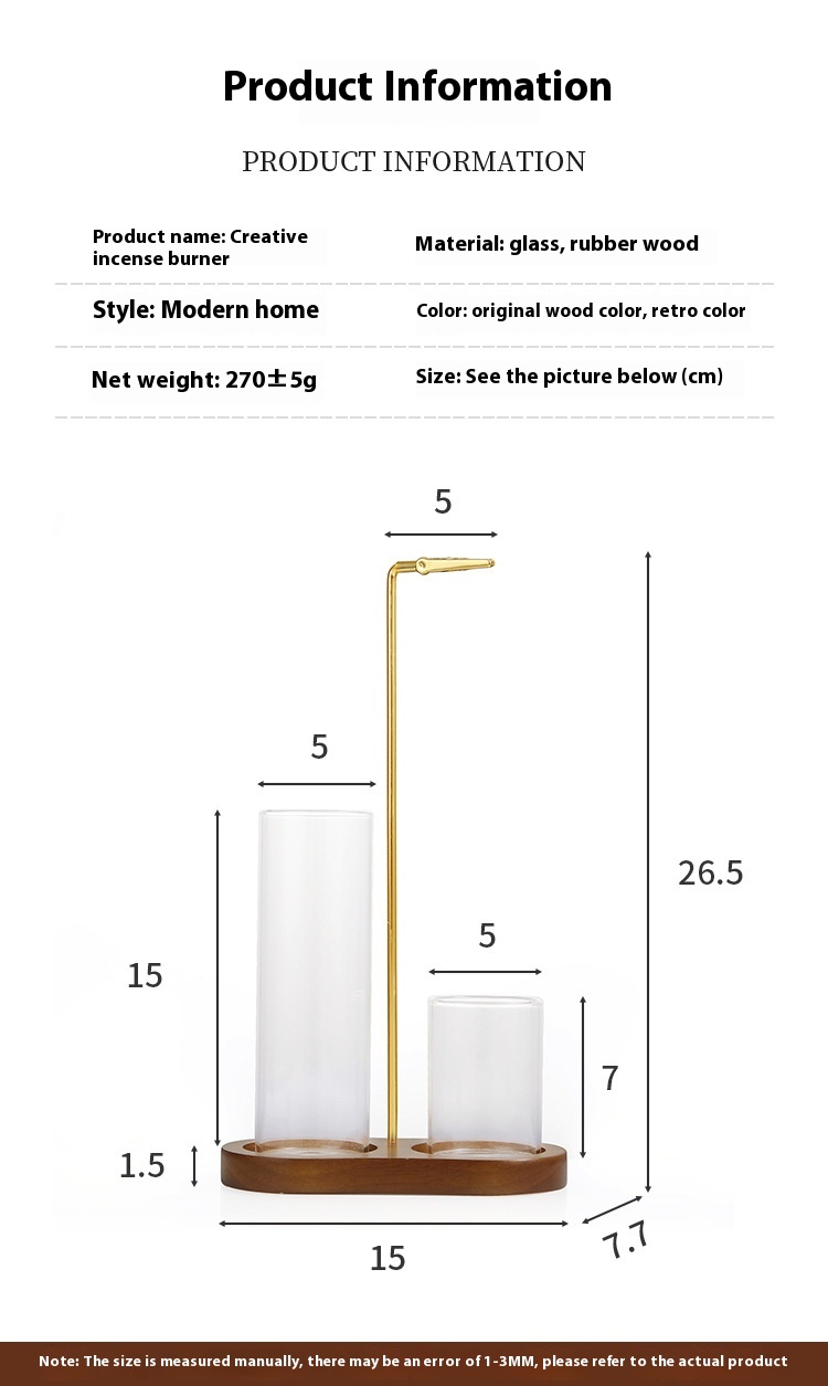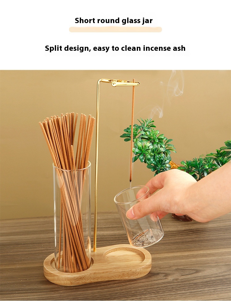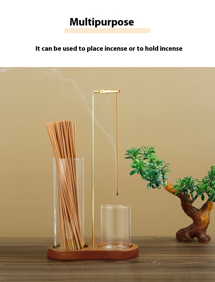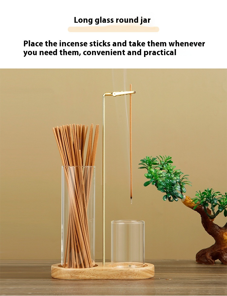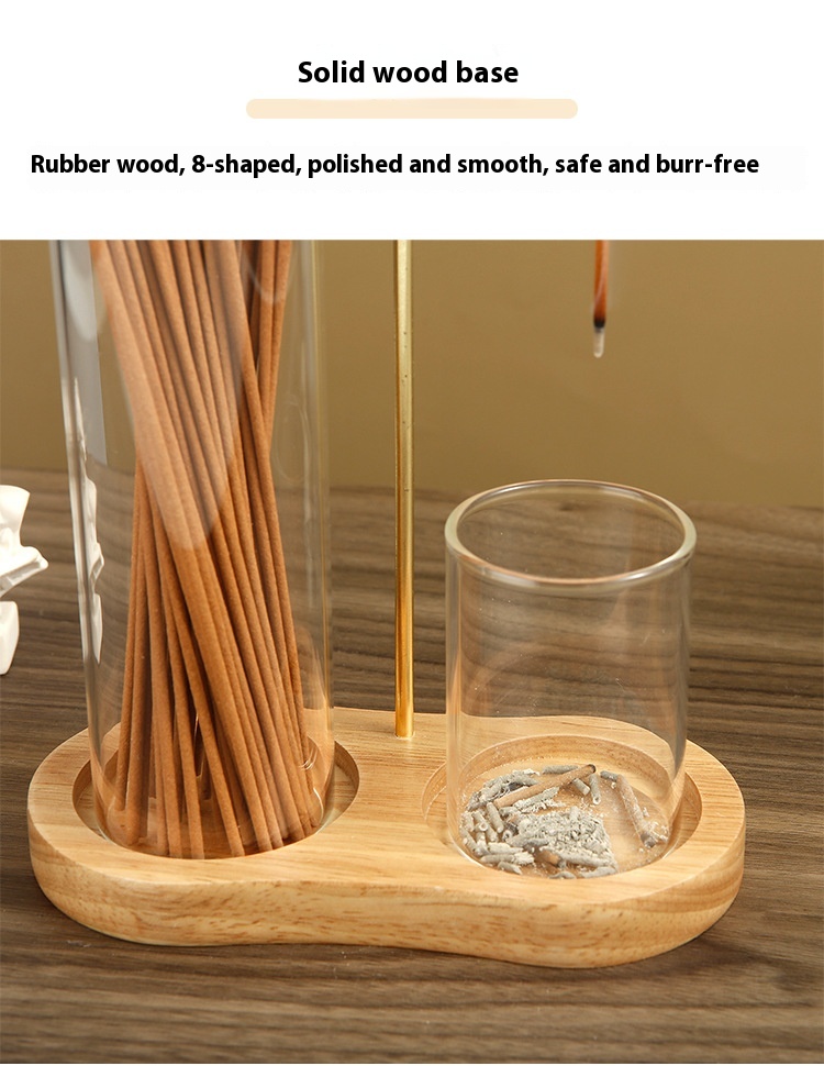 Solid Wood 8-shaped Incense Burner Rubber Wood Glass Incense Burner